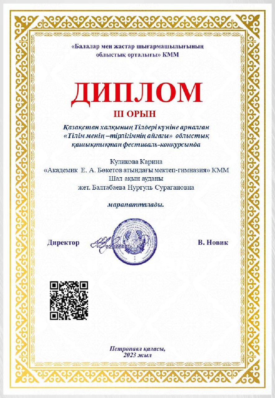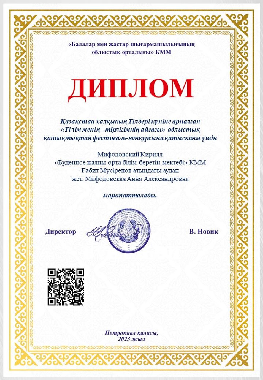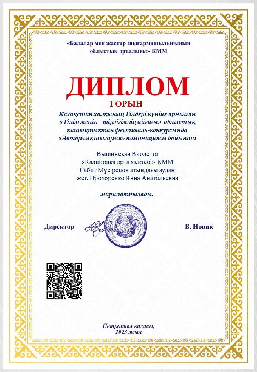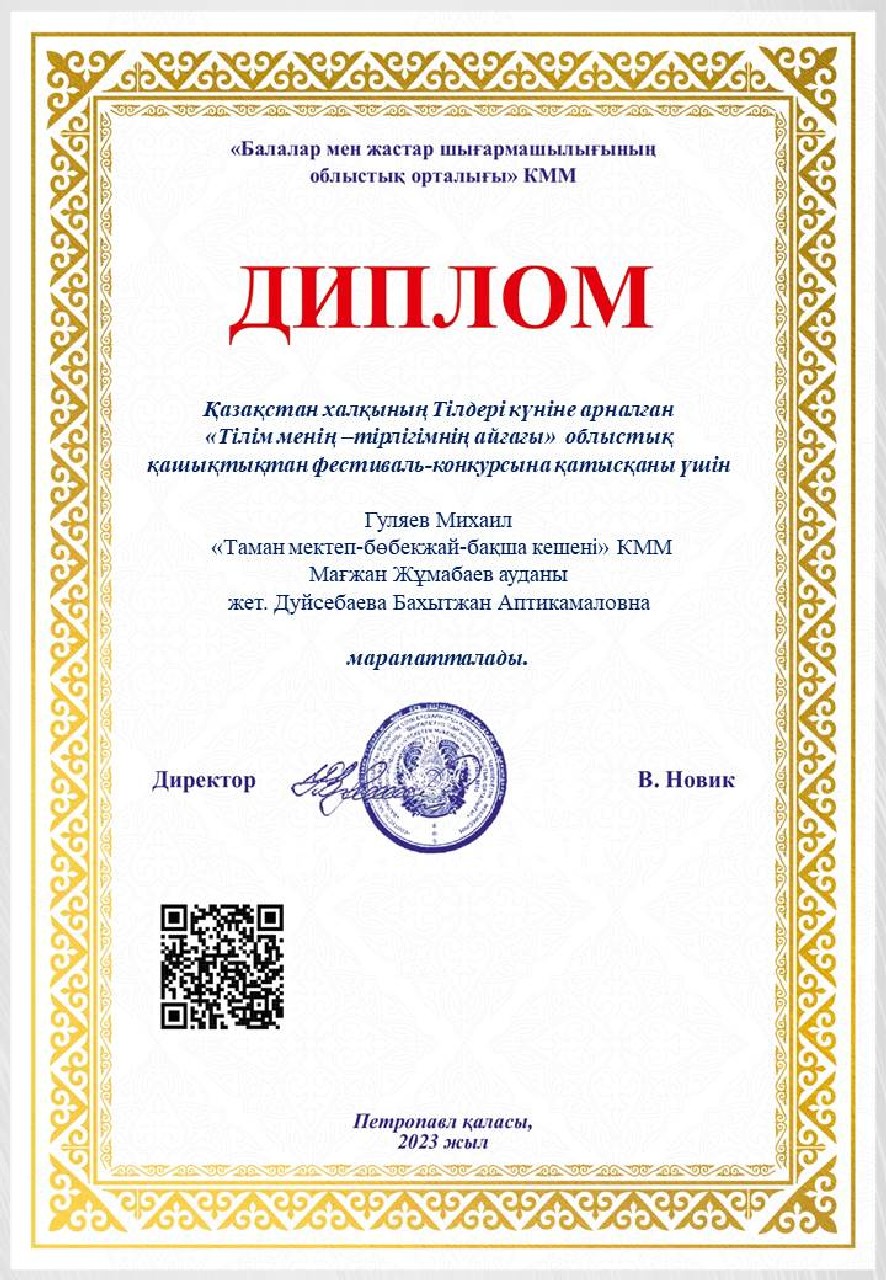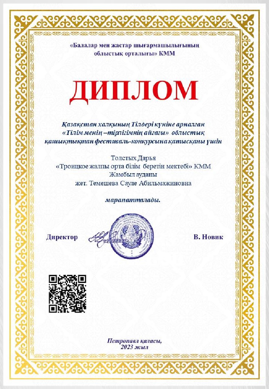 Дипломы Областного дистанционного фестиваля-конкурса «Тілім менің — тірлігімнің айғағы», посвященного ко Дню языков народа Казахстана