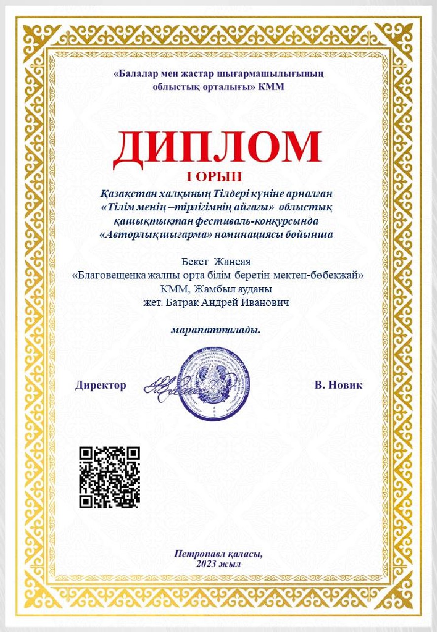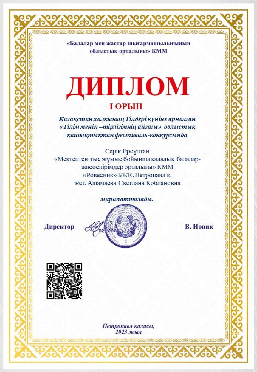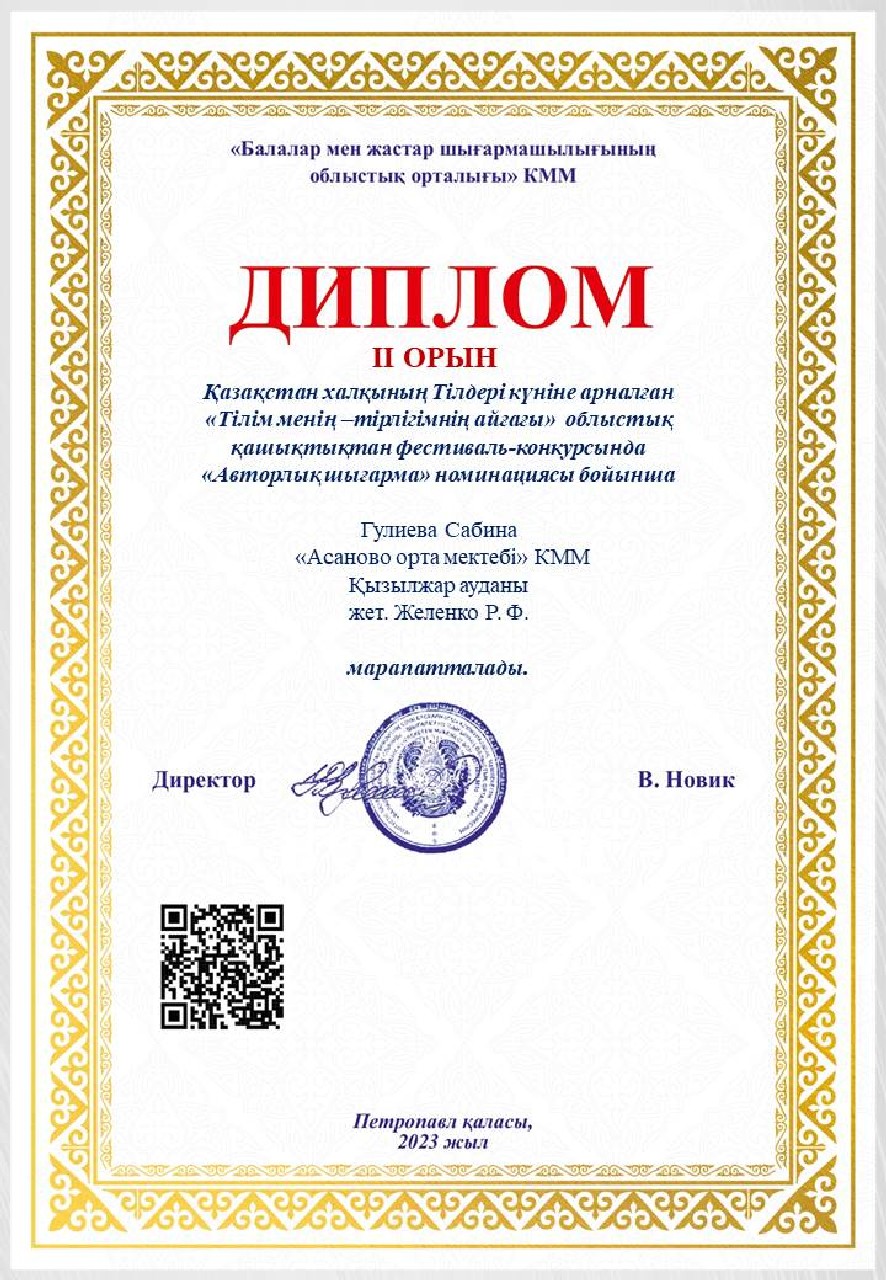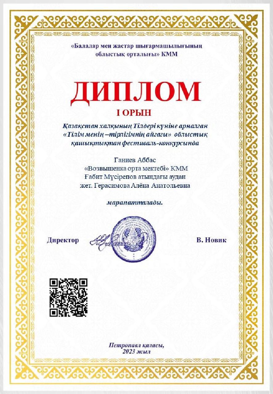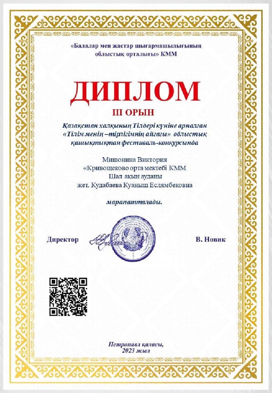 Дипломы Областного дистанционного фестиваля-конкурса «Тілім менің — тірлігімнің айғағы», посвященного ко Дню языков народа Казахстана