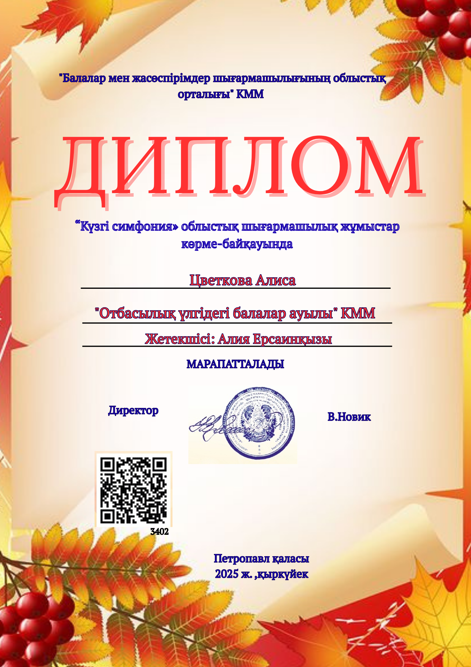 Цветкова Алиса, КГУ "Детская деревня семейного типа".