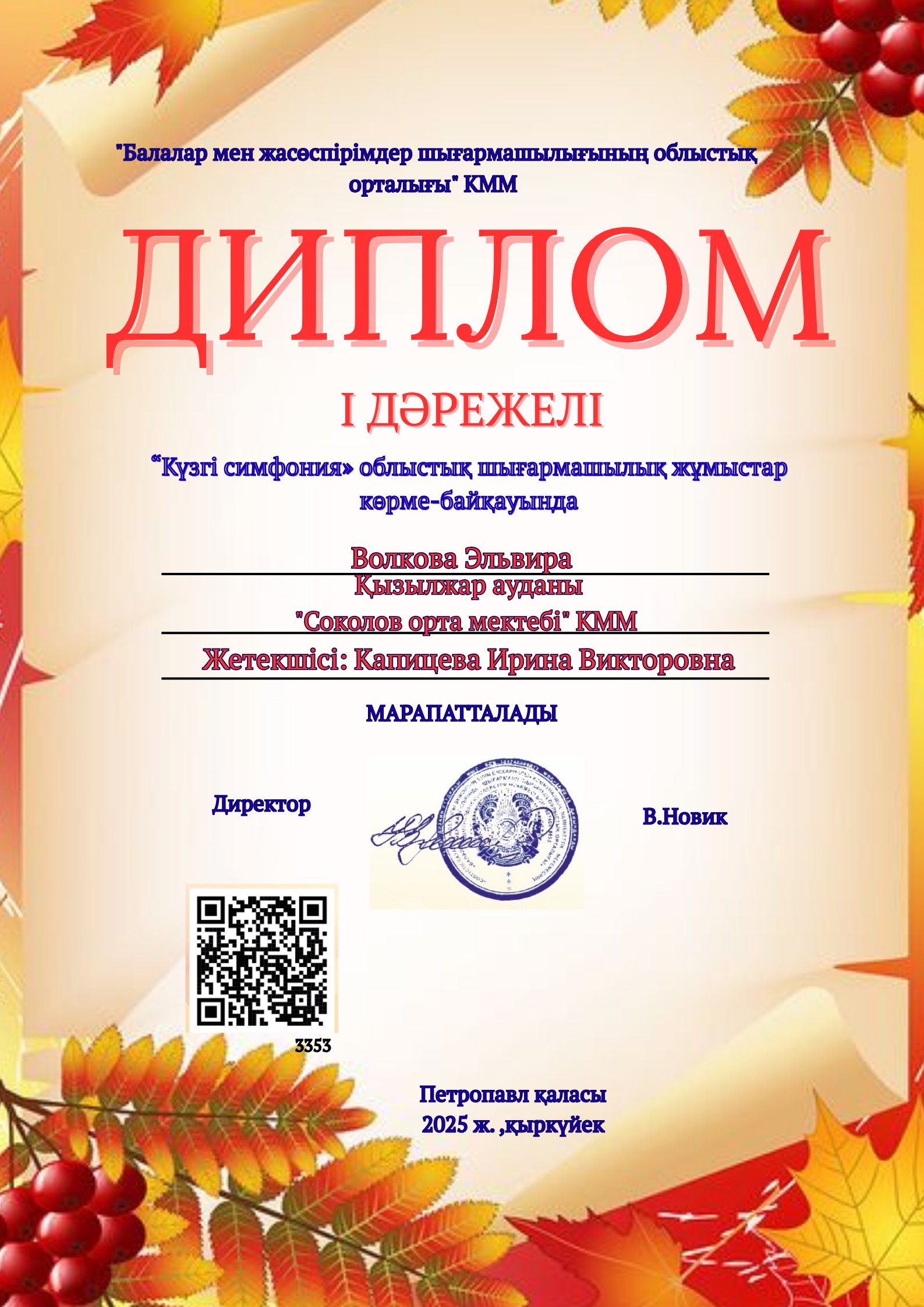 Волкова Эльвира, Кызылжарский район КГУ «Соколовская средняя школа», Рук. Найман Елена Рафаиловна.