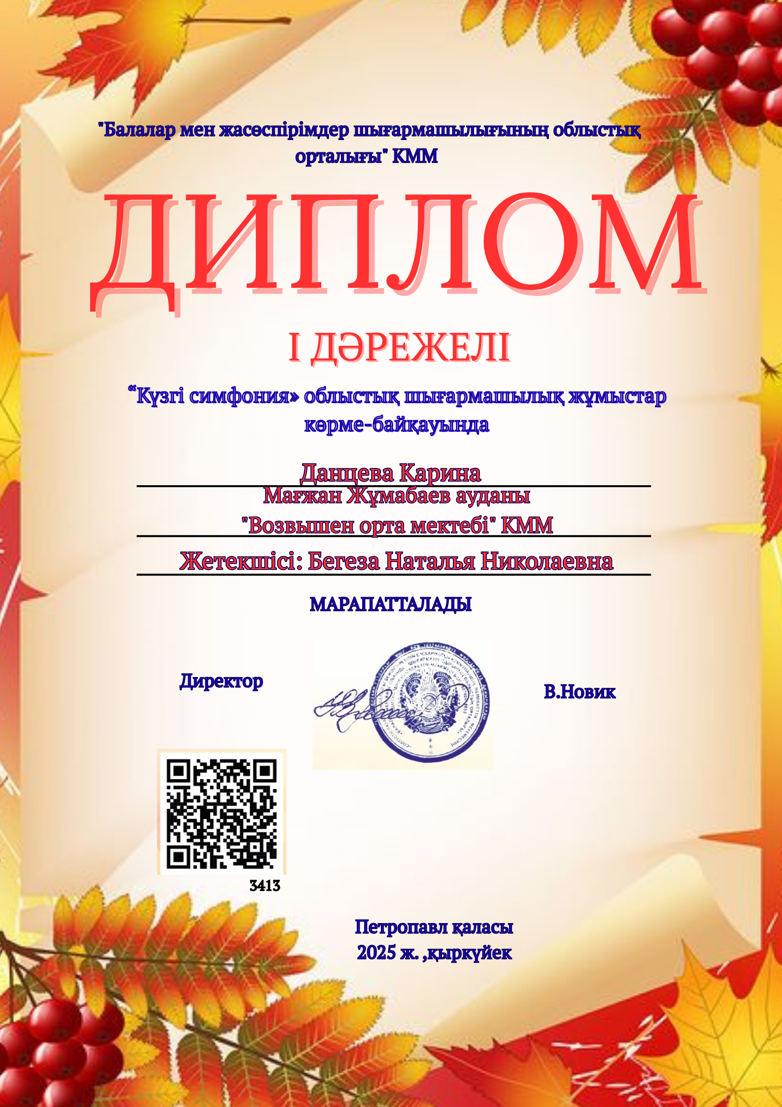 Данцева Карина, район Магжана Жумабаева КГУ "Возвышенская средняя школа". Рук. Бегеза Наталья Николаевна.