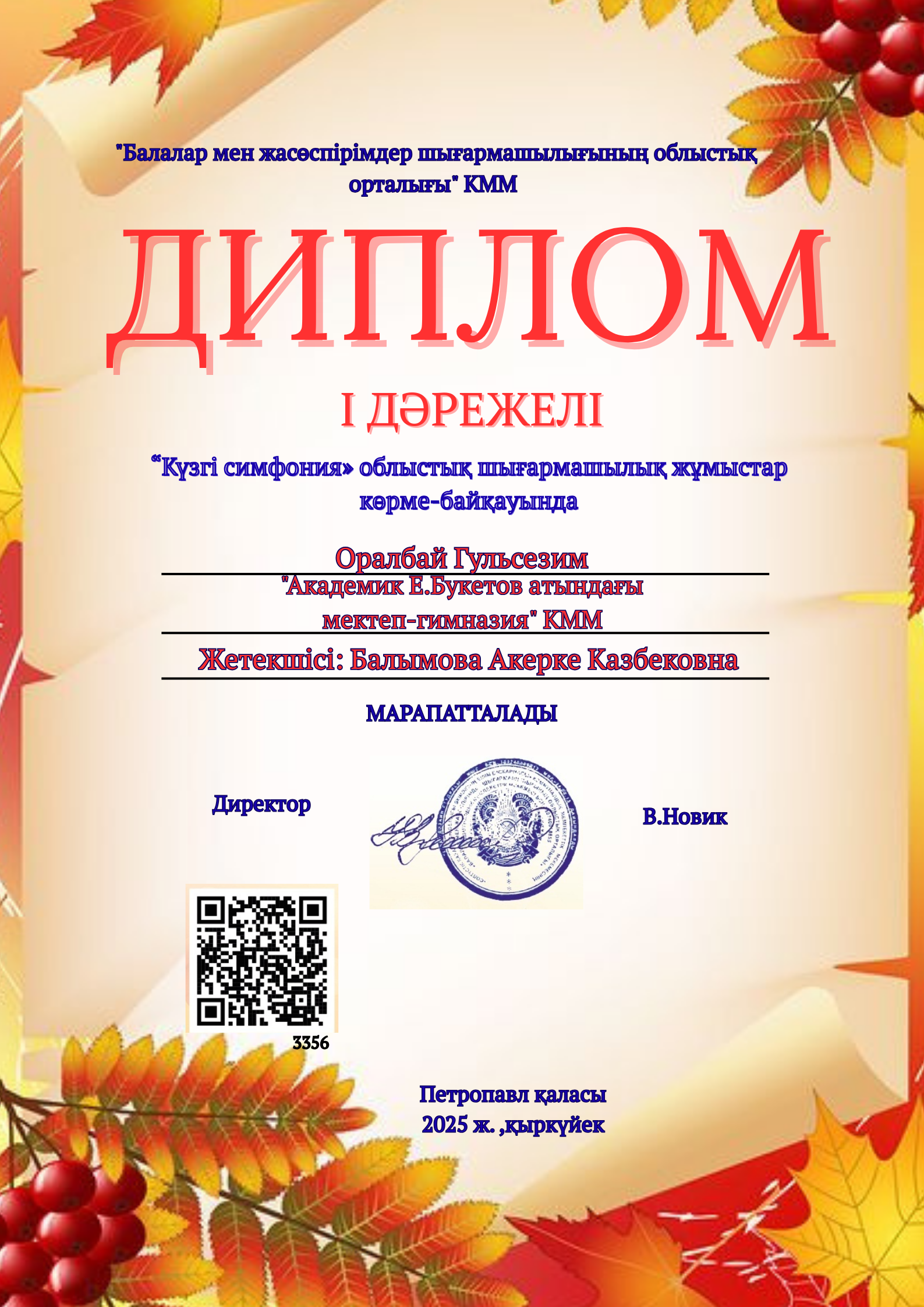 Оралбай Гульсезим, КГУ "Школа-гимназия имени академика Е.Букетова". Рук. Балымова Акерке Казбековна.