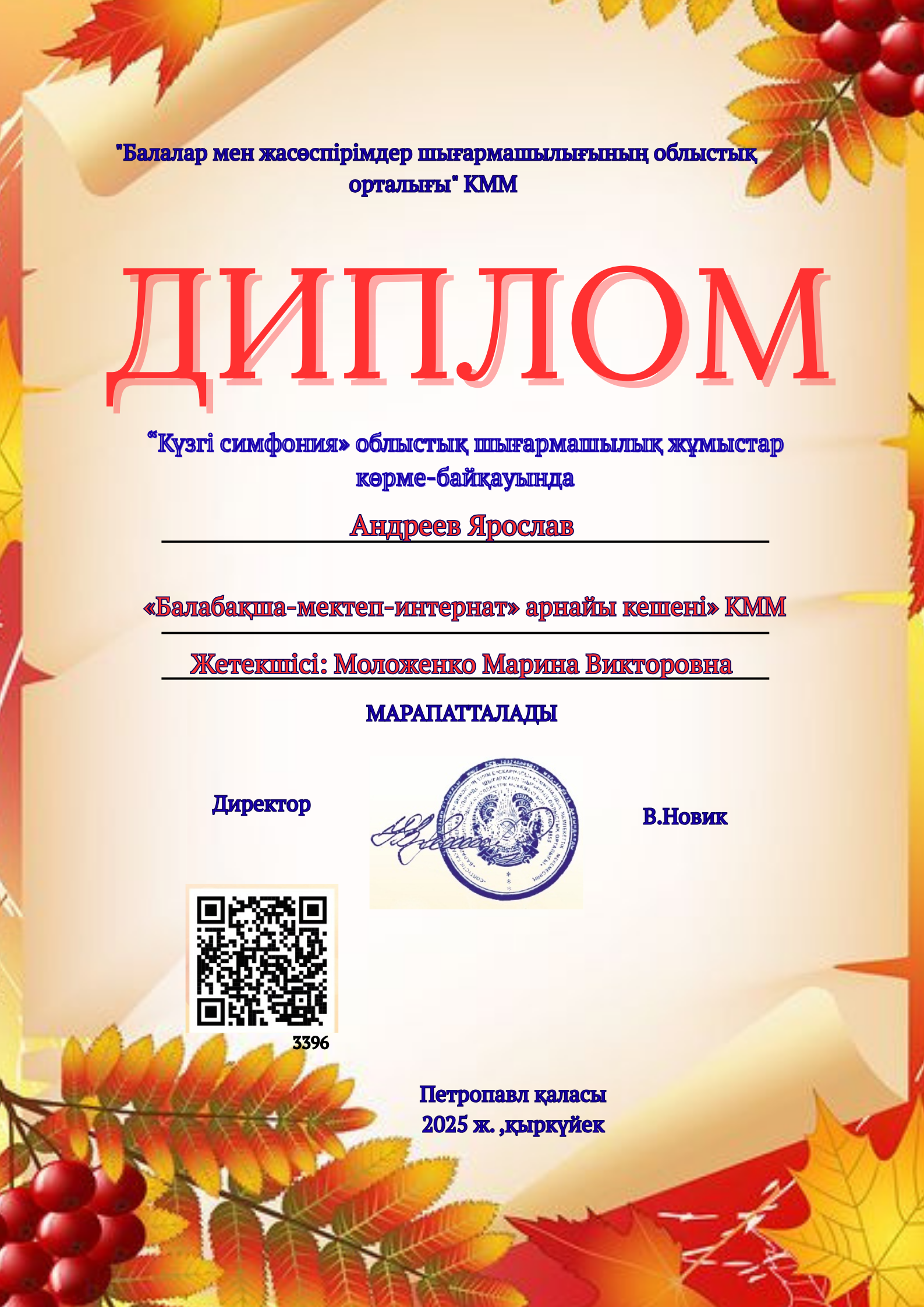 Андреев Ярослав, КГУ "Специальный комплекс "Детский сад-школа-интернат". Рук. Моложенко Марина Викторовна.